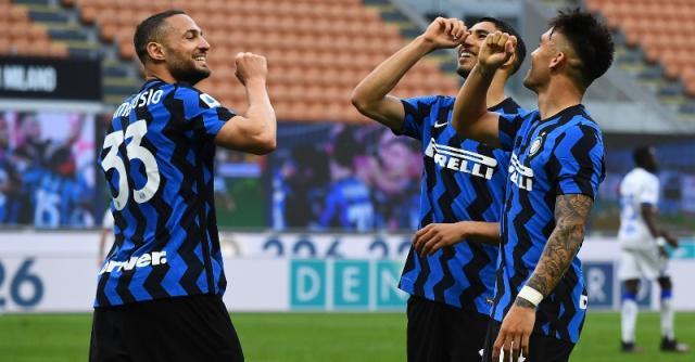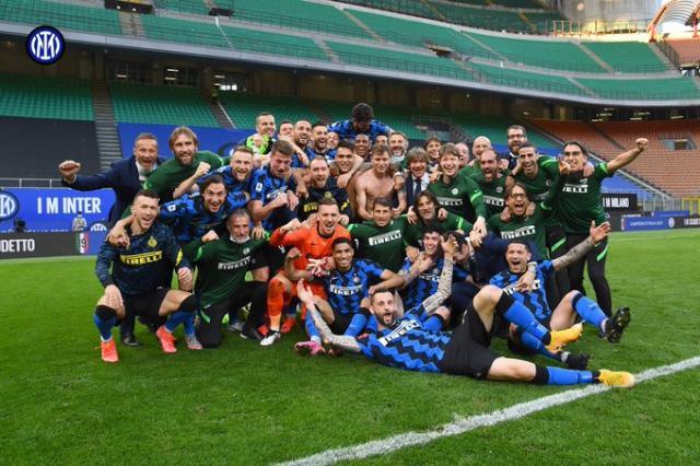 下午4点半左右,随着蓝黑大巴开入球场,球迷们的狂欢达到最高潮。遗憾的是,新冠光景下,狂欢的球迷们没法跟随他们的英雄们开进“足球斯卡拉”;欣慰的是,蓝黑将士在场上的表现,配得上八万人的齐声助威。还记得首回合交手的旧将双响和“菜地”马拉西的鸽群吗?上一次蓝黑在联赛中败北,对手正是拉涅利的球队。一切宛如昨日,但至今已经又踢了整整一个循环,孔蒂的球队交出的成绩单是:15胜4平!
